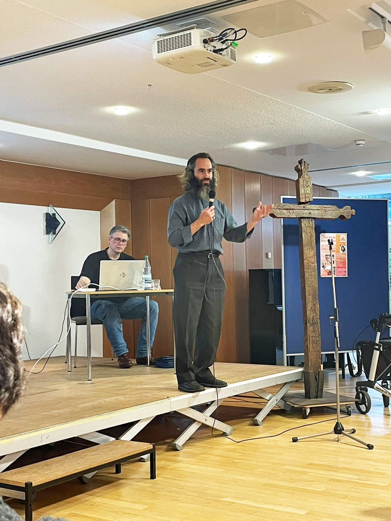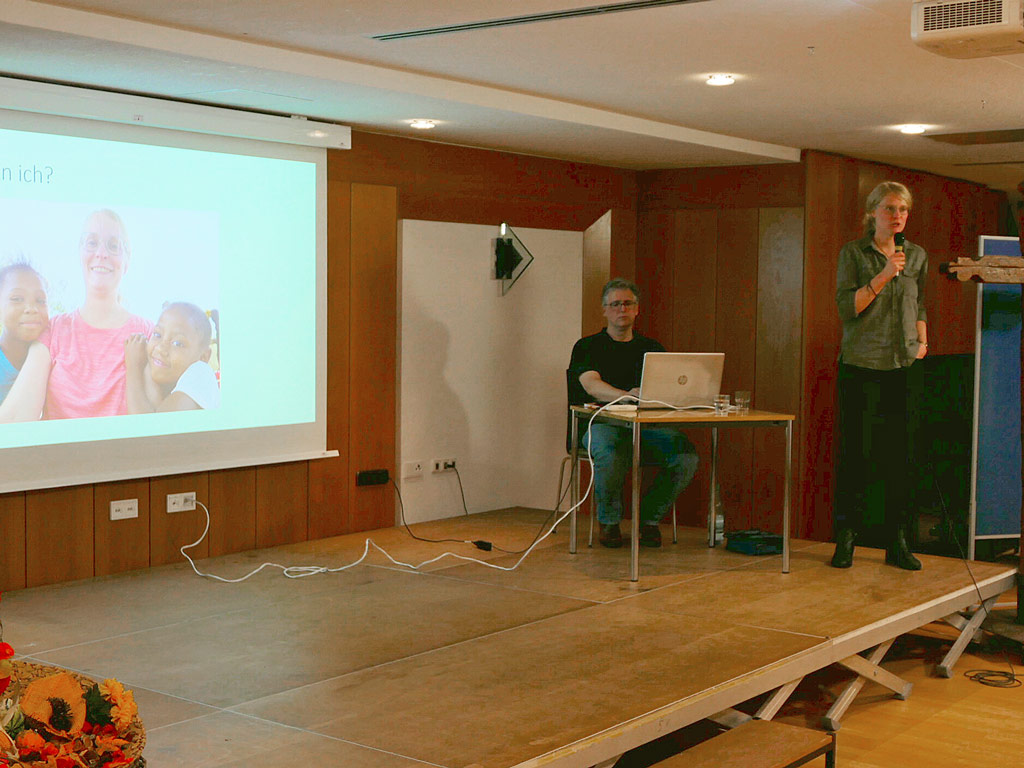 Lena Frigger, die 1. Vorsitzende von FOPOS, ergänzte Pater Wims Worte mit ihrem Vortrag über ihre eigenen Erfahrungen von ihrem freiwilligen Einsatz im Luigi Scrosoppi Care-Center. Diese Arbeit sieht sie als vorbildlich gelebten christlichen Glauben, was sie sehr bestärkt, sich mit FOPOS für die Unterstützung des Projektes zu engagieren.