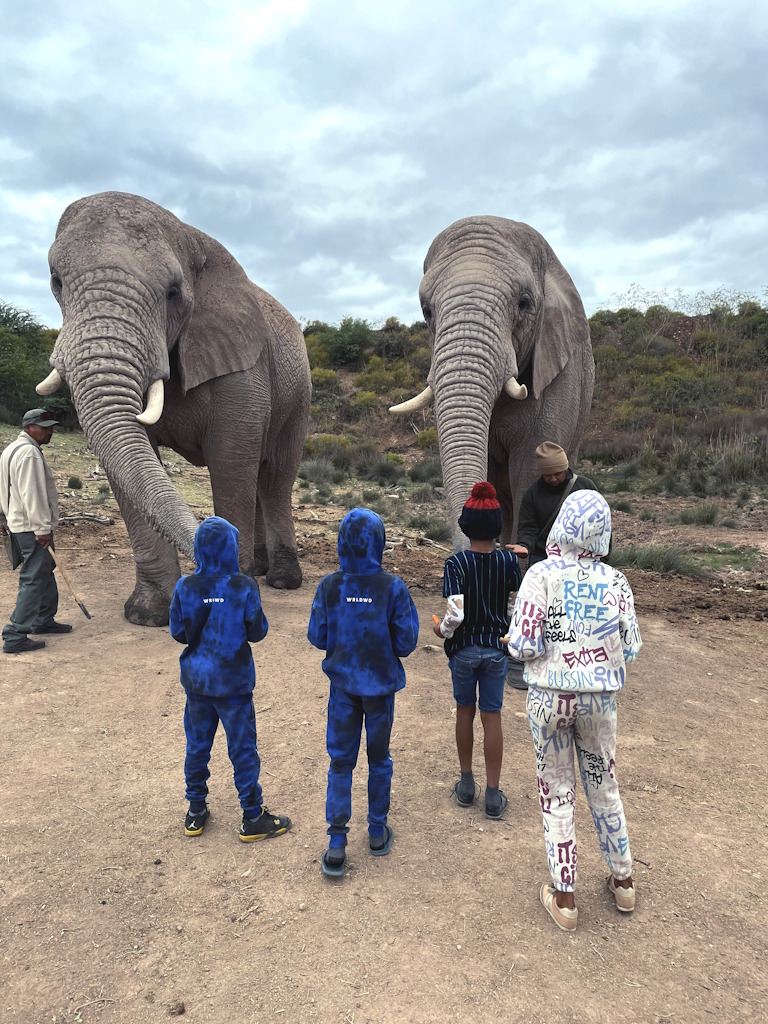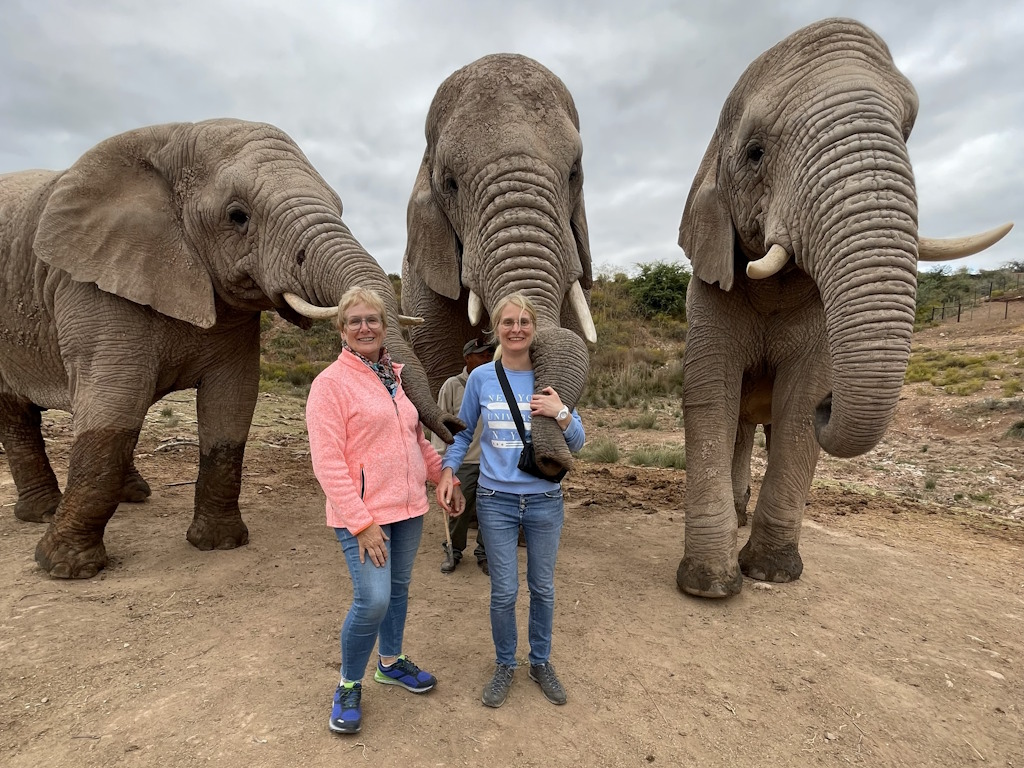 Mit einer kleinen Gruppe aus Haus Luigi machten wir einen Ausflug zu den drei Elefanten im Reservat „Buffelsdrift“ ganz in der Nähe von Oudtshoorn. Zuerst waren die Kinder und auch meine Mama zögerlich als wir dort Angesicht zu Angesicht mit den grauen Riesen standen. Doch nach einigen Annäherungsversuchen merkten alle, dass die Elefanten sehr sanftmütig waren und sich für ihr Futter bedanken wollten, wenn sie ihre Rüssel für eine Umarmung um uns legten. Ruth, die neue Freiwillige, die seit Oktober über den Südafrika Initiativkreis Neuenkirchen für ein Jahr im Center mitarbeitet, begleitete uns bei dieser einzigartigen Erfahrung. Ein abschließender Abstecher ins Restaurant mit dem goldenen M rundete einen Nachmittag voller Highlights für die Kinder und uns ab.