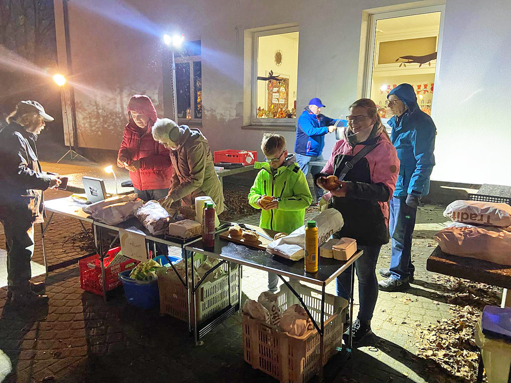 Zusammen erfreuten wir viele mit einer leckeren Bratwurst im Brötchen. Trotz leichtem Nieselregen hatten wir gemeinsam viel Freude bei der Aktion.