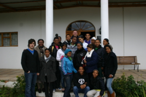 Bruder Mark (links unten) mit Jugendlichen vor dem Oratorium (oben Mitte Pater Leon) in 2012
